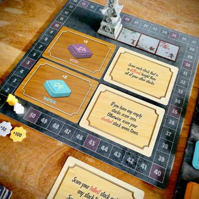 The elements collected each turn will allow you to collect more elements over the turns and rounds. Points are scored at the end of each round based on goals selected at the start of the game, as well as the elements chosen at the end of the game. The player with the most points at the end of the game wins.