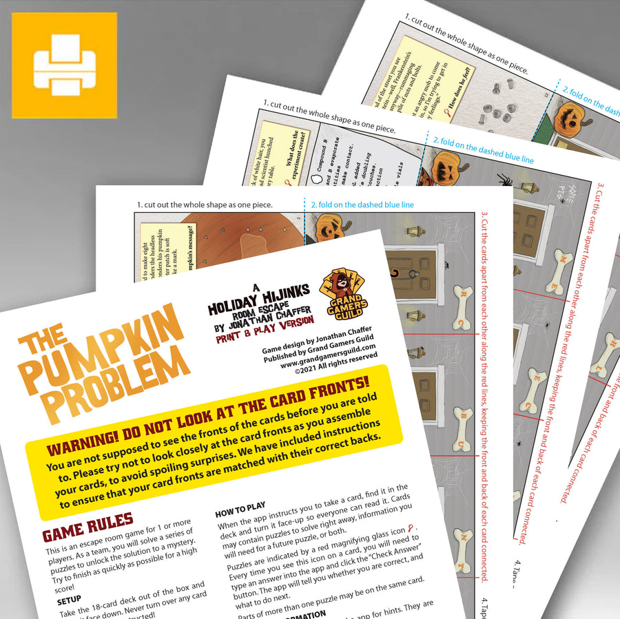 This game is an 18-card escape room experience for 1 or more players, and takes about 60 minutes to solve cooperatively.