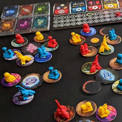Your exploration is accomplished through a clever system of hidden planning on a shared board. When the planning board is full, it is resolved in sequence…with all players benefiting from each others’ plans! By anticipating what your opponents want to do next, where they want to go, and how they want to score, you’ll be able to squeeze the most out of your efforts, and ensure that your faction builds the greatest star-spanning network of them all!