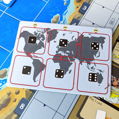 ACTIONS. Roll your dice and then place them onto the Action spots, activating a variety of useful abilities. Stuff like moving animals around, managing the destruction of the environment, trying to influence ambassadors, preparing for Impacts, and playing cards from your hand. As the game goes on, you will be adding Actions to the play area which will develop your team's capabilities. Work together to form the best skill set!