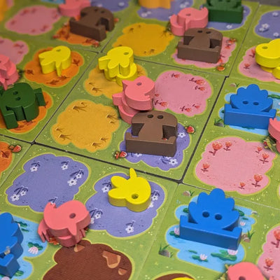 Each turn in Under the Leaves is played in two phases: the placement of a garden tile, then the possible arrival of new beings. Whoever gets the most pieces in total wins.
